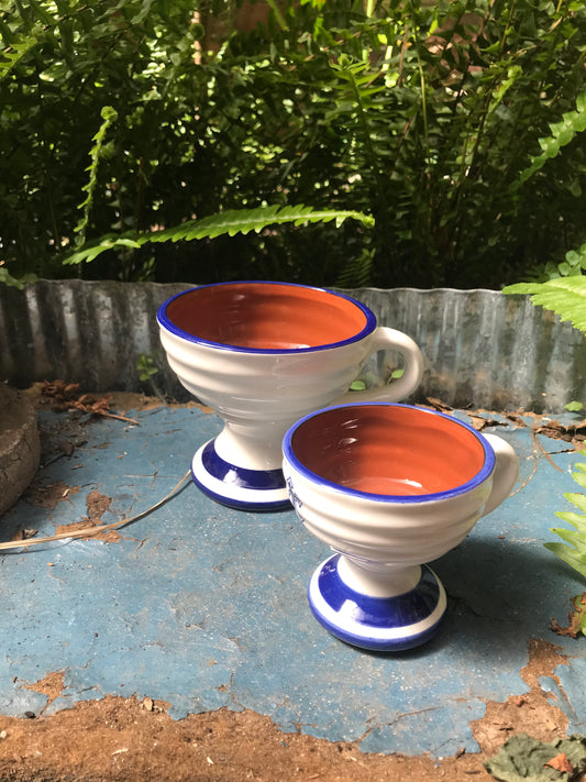 Blue & White Ceramic Incense Burner Cup with Cross Sign and Handle